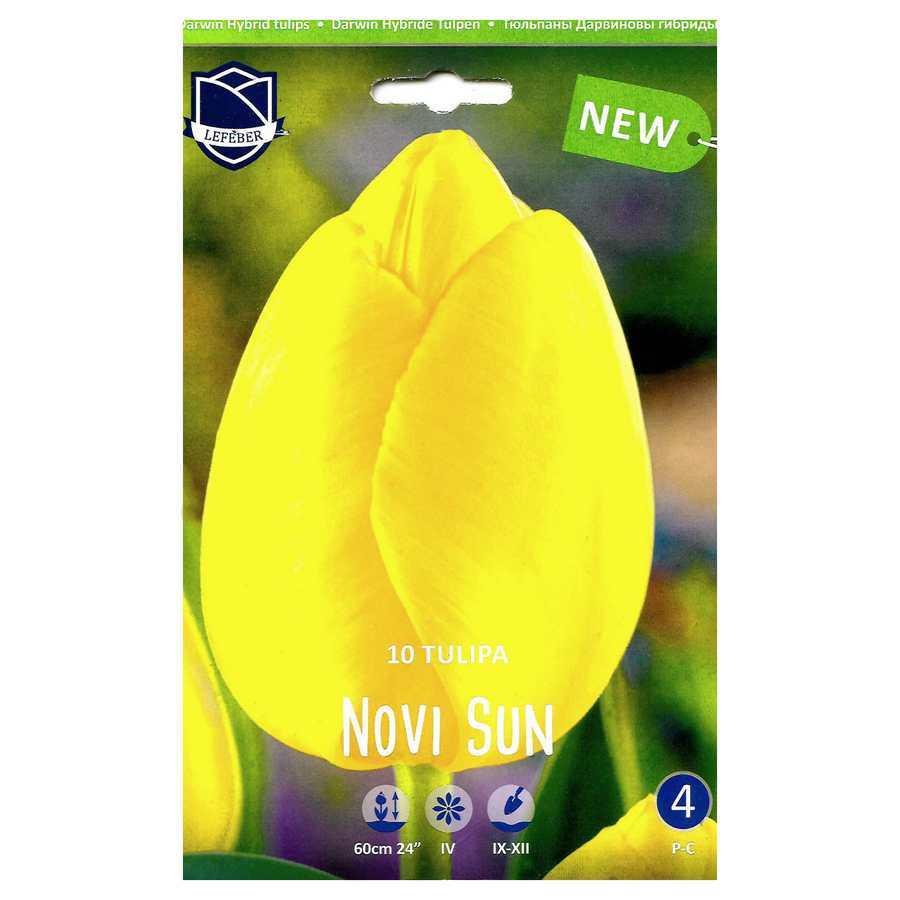 Тюльпан имеет бокал классической чуть заостренной формы, желтого цвета. Раскрывшиеся цветки этих тюльпанов достигают 10 см в диаметре, имеют крепкие мощные стебли. Высота 55см.