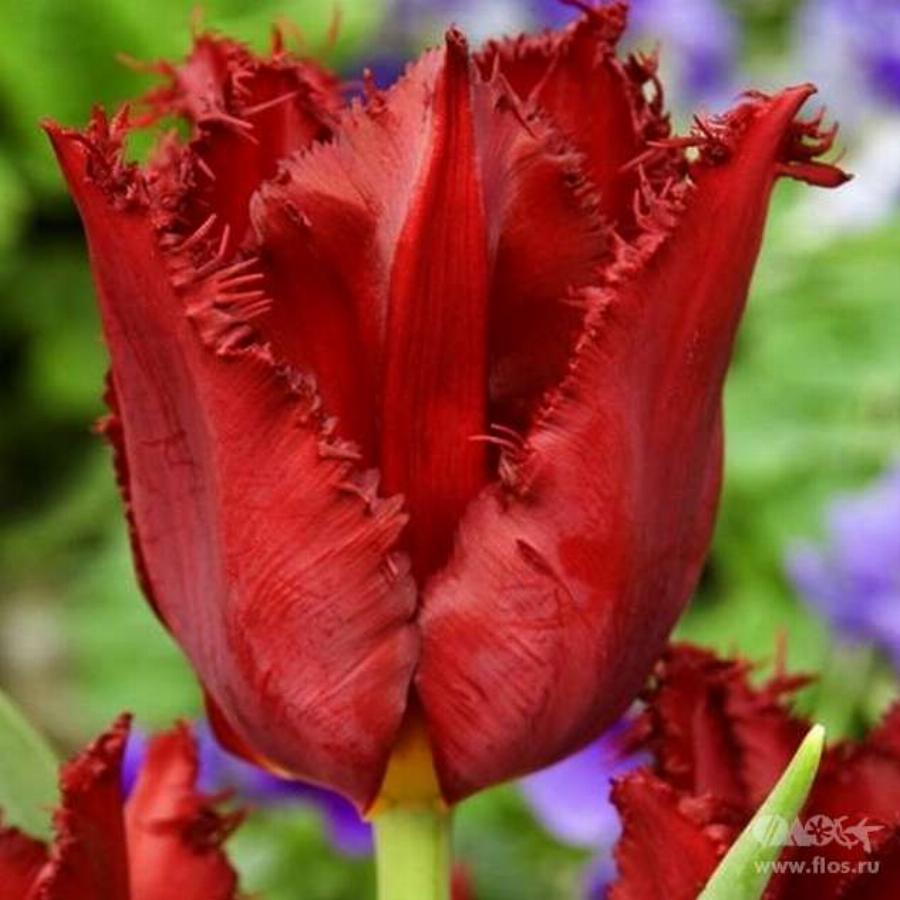 Цветок темно-малиново-красный. К концу цветения атласные лепестки приобретает коричневатый оттенок. Изящная игольчатая бахрома по краю лепестков. Донце желтое. Срок цветения средний. Высота растения: 45-55 см.