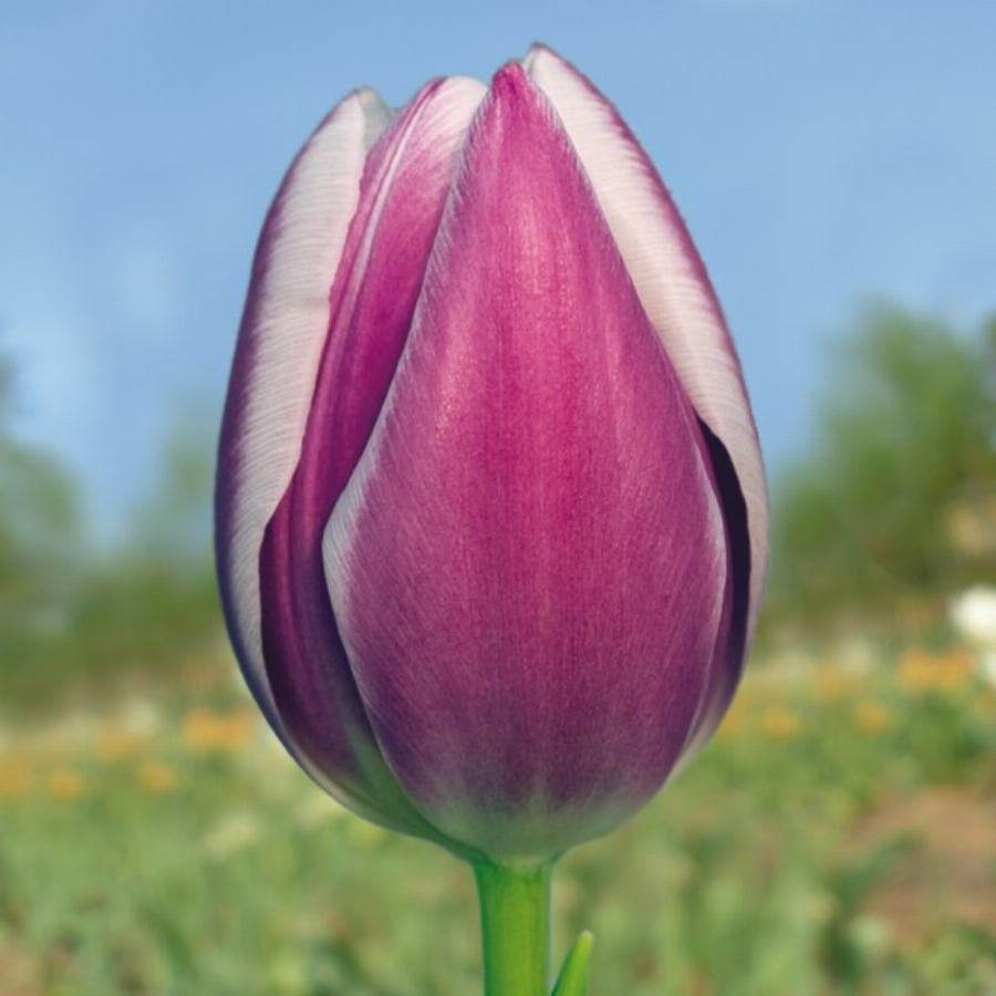 Высотой до 60 см. тюльпан пурпурно-фиолетового цвета с белой каймой.