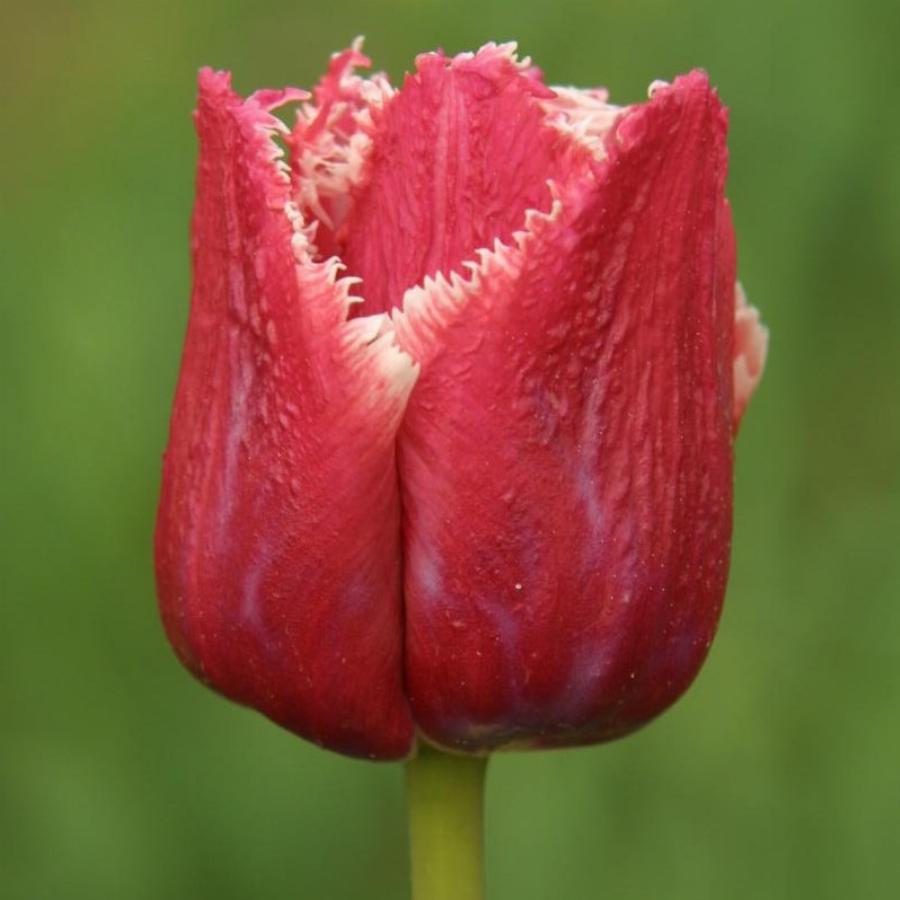 Кардинально красный с блестящей поверхностью и густой чисто белой бахромой подчеркивающей выточеную форму бокала