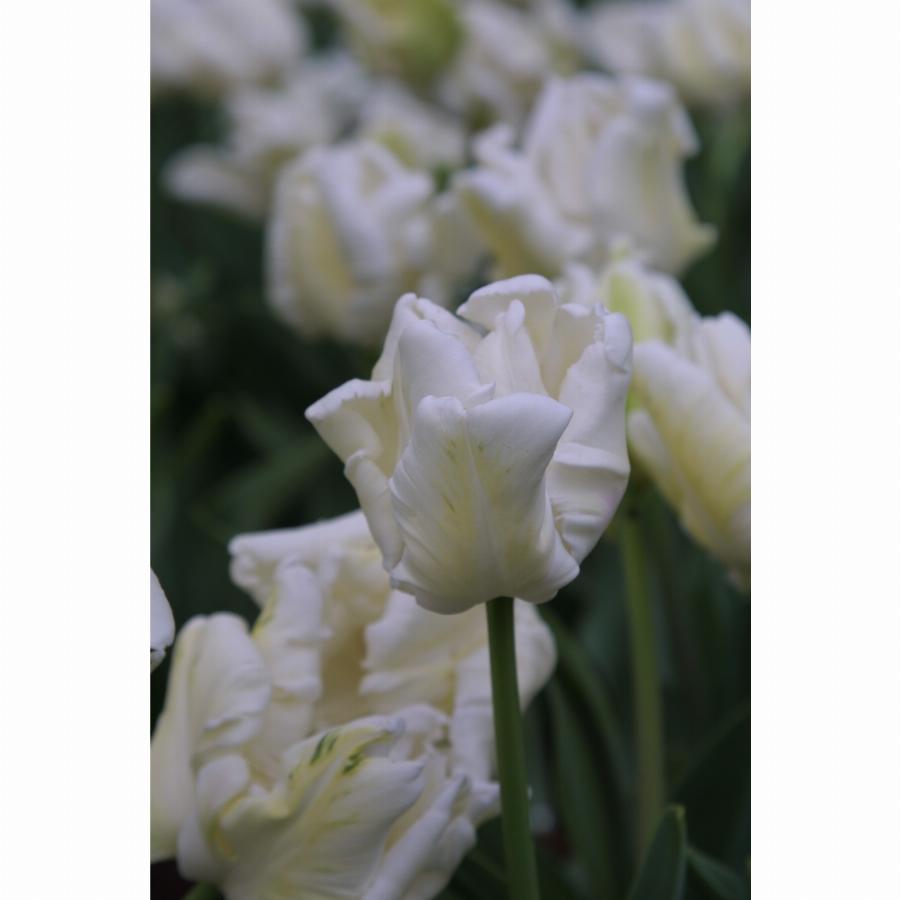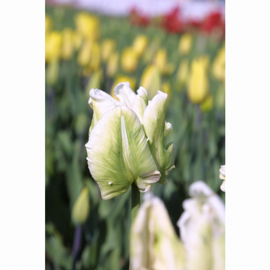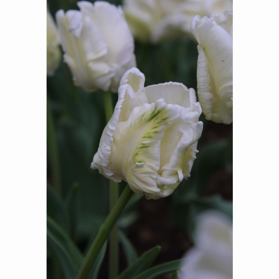 Класс 10. Попугайный. Цветок кремово-белый с насыщенно зелеными всполохами по центру лепесков. Бокал крупный с разрезаными лепестками отличной попугайной формы. Цветонос высотой 60-80 см. Прекрасной сорт для срезки, украшения сада и зимней выгонки.