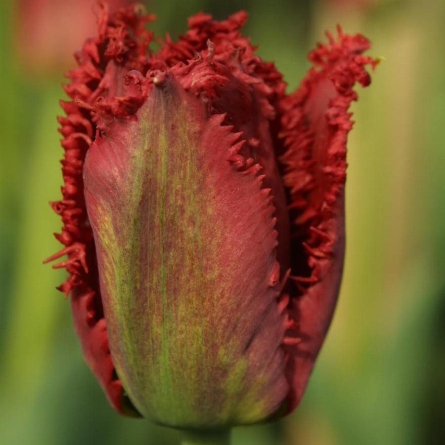 Высота растения 45см, цветок темно-кроваво-красный с однотонной шикарной бахромой. Высота бокала 8см. Пригоден для выгонки. Поздний.