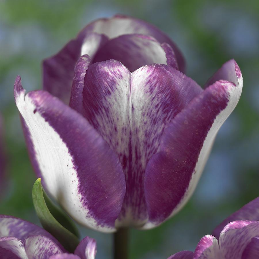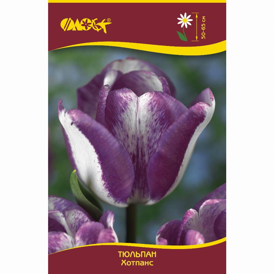 Тюльпан «Хотпанс». Высота 45 см. Диаметр 10 см. Цвет белый с сиреневыми краями.