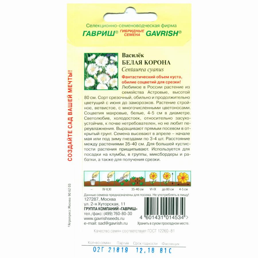 ВАСИЛЕК БЕЛАЯ КОРОНА 0,2 Г гавриш