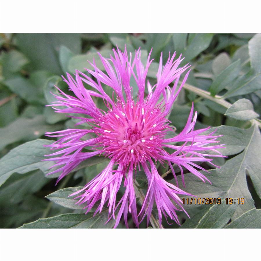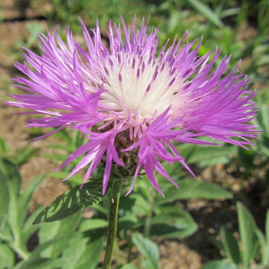 Один из наиболее эффектных васильков, так как у него не только красивые ярко-розовые цветы, но и великолепные листья. Нижние прикорневые — на длинных черешках, перисторассеченные, сверху зеленые, а снизу седовато-войлочные. Конечная доля почти равна боковым. Доли овальные, заостренные на конце. Стебли прямостоячие, крепкие, разветвленные, высотой до 60 см, покрыты цельными сидячими серебристыми листьями. Корзинки располагаются на концах стеблей, они одиночные (диаметром до 4 см), но их много, так как стебли ветвистые. Весь куст сферический, серебристый, аккуратный.
