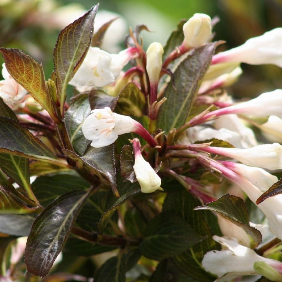 Первая карликовая вейгела с пурпурным листом и белыми цветками. Цветет июнь-июль. Высота 30-40 см, ширина куста 60-80 см. Сорт морозоустойчив. Почвы предпочитает влажные и плодородные.