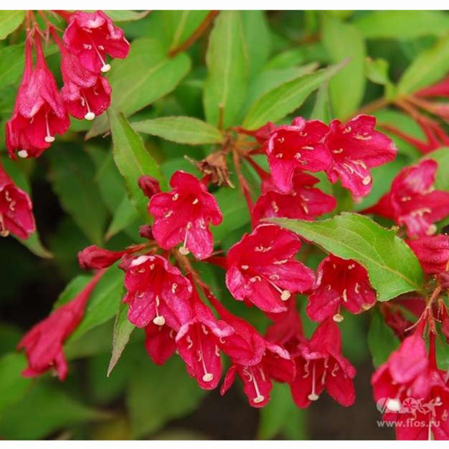Кустарник. Высота до 2м, диаметр кроны до 3м. Крона раскидистая. Период цветения: июнь-август. Цветки по краям карминно-красные, блестящие, внутри светлее. Листва: эллиптические, заостренные, ярко-зеленые. Место: солнце-полутень. Почва: влажные, хорошо дренированные, природные почвы.