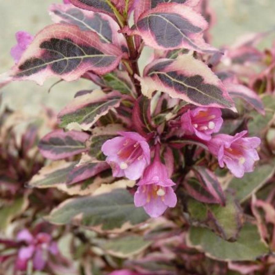 Низкорослое растение, высотой 0,5-1 м. Листва с пестрой окраской. Они могут быть зеленовато-розовыми или темно-зелеными с бело-розовой каймой. Весной и летом окраска листьев преимущественно зеленая с легким розоватым оттенком, а осенью их окантовка становится насыщенно-бордовой. В мае на нем распускаются многочисленные розовые цветки в форме колокольчиков.