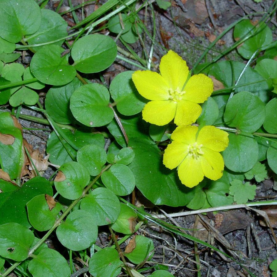 Высота растения не превышает 5см, тонкие стебельки длиной до полуметра довольно густо покрыты сидячими супротивными округлыми листочками размером с нынешнюю двухрублевую монету, постепенно мельчающими от основания к верхушке. И листья, и стебли имеют свежий светло-зеленый цвет. В таком виде они сохраняются и под снегом, с весны постепенно заменяясь новыми. Цветки звездчато-колокольчатые, диаметром до 3см, пятилепестковые, ярко-желтые, нитевидными цветоносами прикрепленные к листовым пазухам. Цветение хоть и не слишком обильное, но продолжительное – с конца мая по август.
