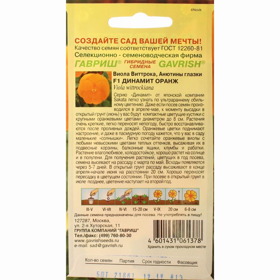 ВИОЛА ВИТТРОКА F1 ДИНАМИТ ОРАНЖ 5 ШТ гавриш