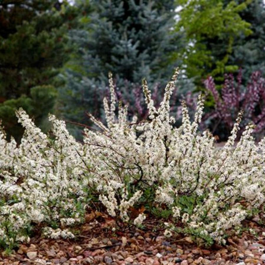 Кустарник до 1-1,5 м высотой, в молодости пряморастущий, в старости — с распростертыми ветвями. Побеги тонкие, голые, красноватые. Листья обратноланцетные, заостренные до 5 см длиной, сверху темно-зеленые, снизу серовато-белые; осенью окрашенные в яркие, оранжево-красные тона, создающие эффектные пятна на фоне темнохвойных пород. Цветет весьма обильно на протяжении 18-23 дней. Цветки белые, душистые до 1,8 см в поперечнике, по 2-3 в пучках. Плоды пурпурно-черные, шаровидные до 1 см в диаметре, съедобные. Растет быстро, светолюбива, морозостойка, весьма засухоустойчива, нетребовательна к почве, городские условия переносит хорошо. Декоративна в течение всего сезона, используется в одиночных, групповых посадках, в живых изгородях, для озеленения склонов, каменистых и песчаных участков в садах и парках.