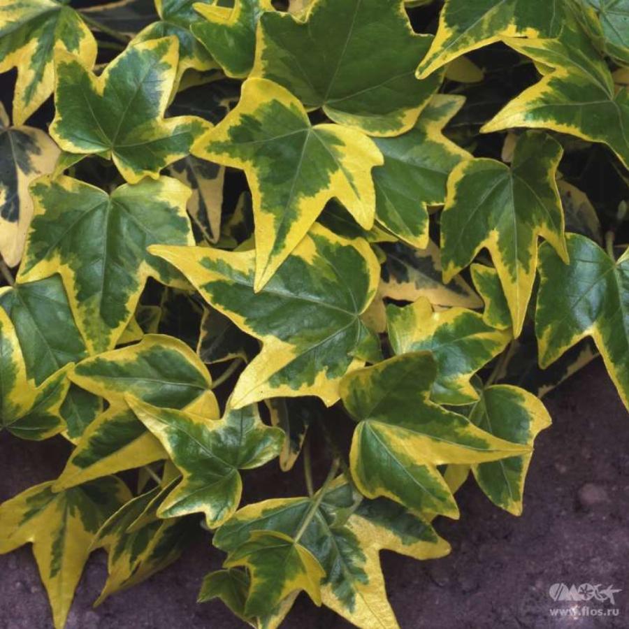 Вечнозеленое растение с многочисленными лазящими побегами. Лист трех-пяти лопастной с долями, которые одновременно заострены и округлы. Крупный: 3-5см. Окрас середины листа варьируется от зеленого до серо-зеленого. По краю — желтая кайма