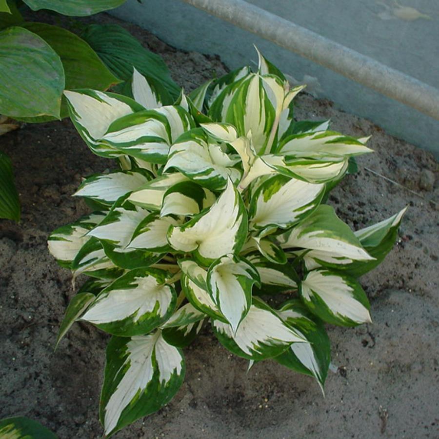 Контрастное сочетание снежно-белого центра и тёмно-зелёного пламеобразного окаймления. Цветы светло-сиреневые на белоснежных цветоносах. Лучше всего проявляет себя в тенистом месте. Случайный реверсивный спорт от хосты «Patriot» и поэтому иногда встречается в продаже под незатейливым названием «анти Патриот».