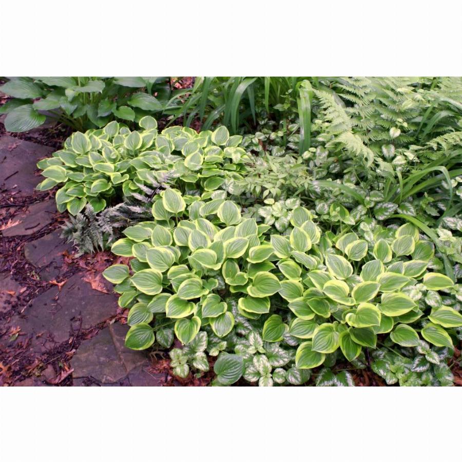 Хоста среднего размера с зелеными листьями с желтой каймой! Куртина аккуратная. Листья овальной формы. Высота растения 0,25-0,35 м. Легкая полутень.