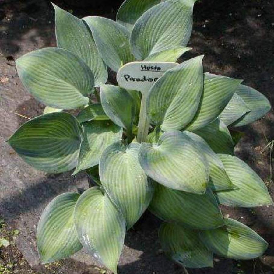 Очередной и очень красивый спорт от хосты Halcyon. Копьевидной формы листья в начале сезона яблочно-жёлтые с голубым налётом и зелёно-синим окаймлением, постепенно цвет середины листа меняется на кремовый. Цветы светло-лавандовые. Предпочитает полутенистые места.