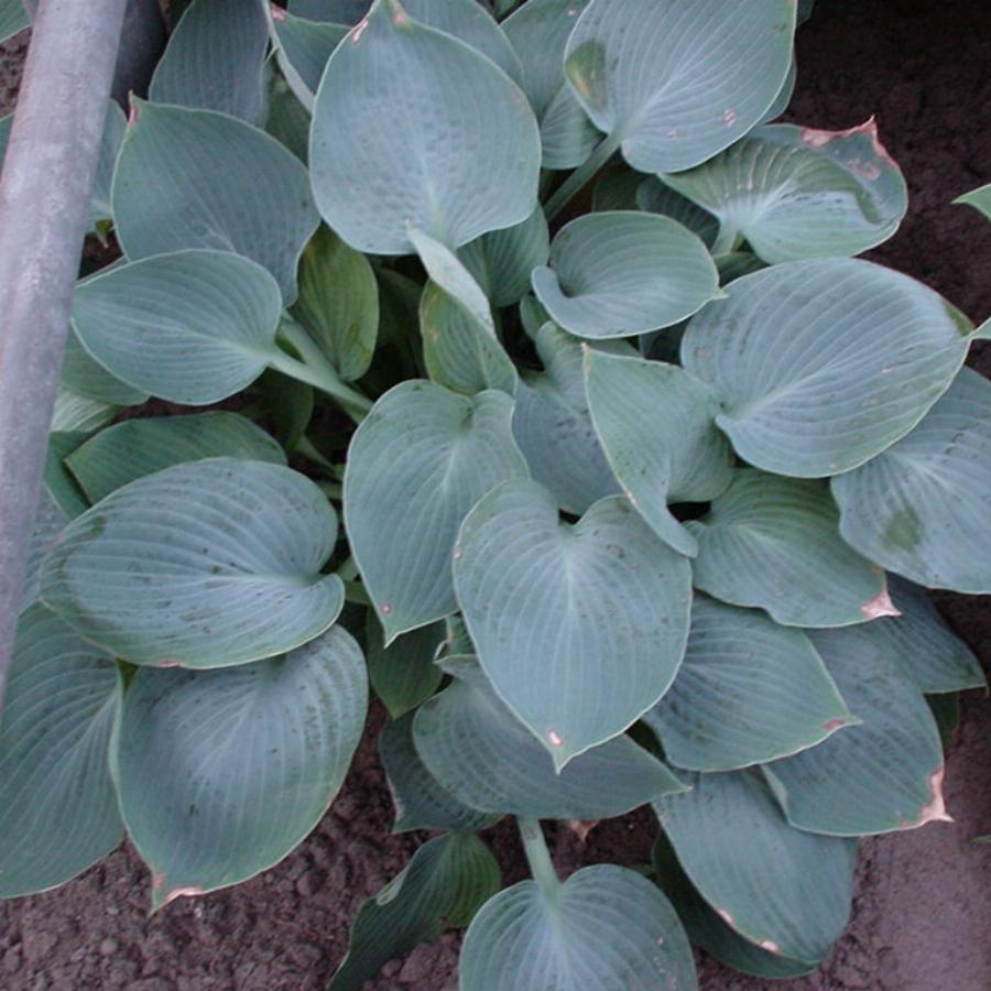 Листья овально-заостренные, насыщенно-голубого цвета, с восковым налетом. Высота 20-30 см. Окраска будет ярче в полутени.