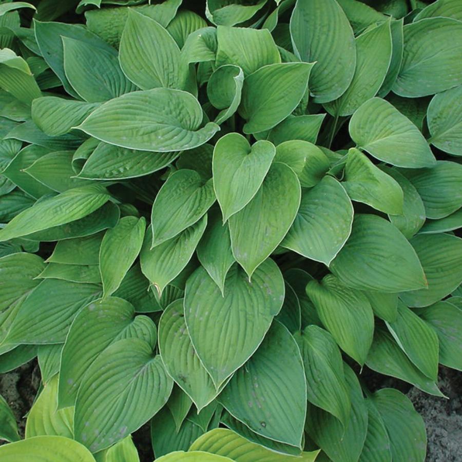 Листья гладкие, сердцевидные. глубокого серо-зеленого цвета, снизу голубые. Быстро растет, образует роскошный куст. Цветки бледно-лавандовые. Полутень, тень.