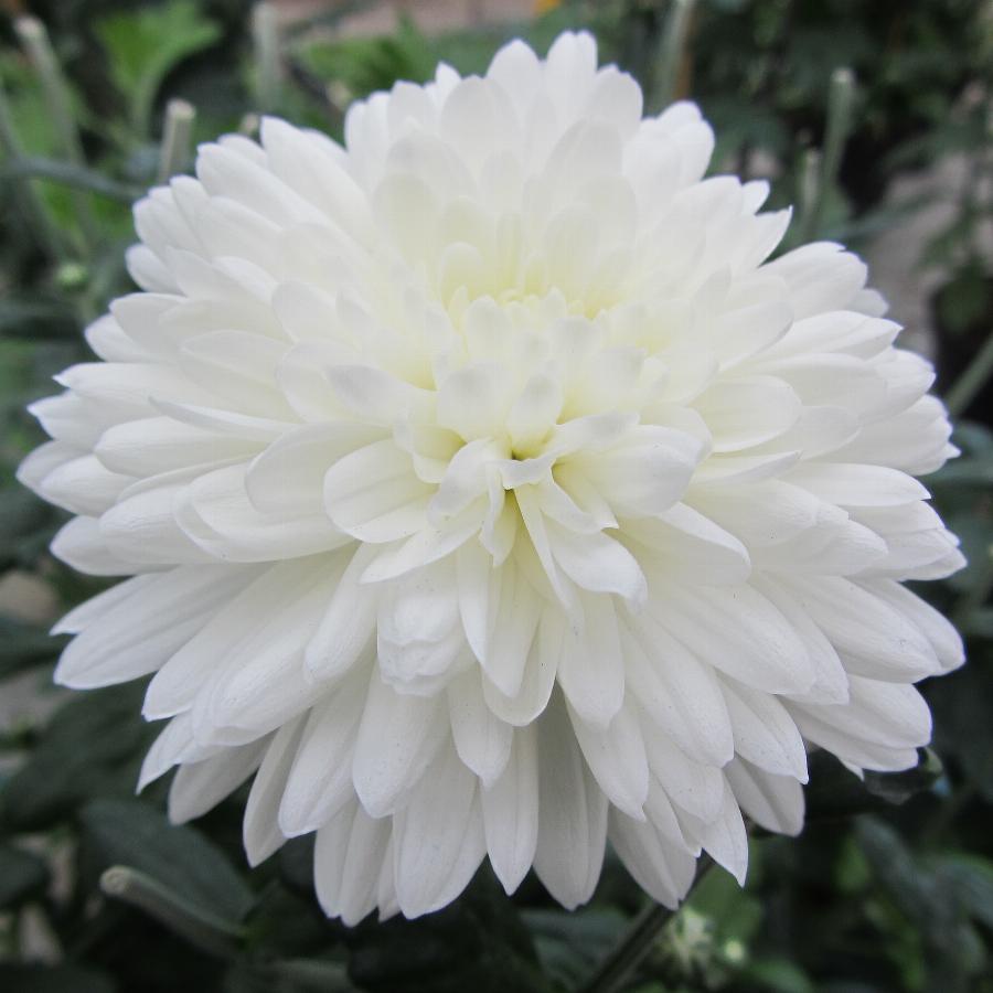 Высота 0,6-0,7 м. Бутоны лимонные, цветы вначале белые с лимонной серединкой, постепенно белеют, цветы махровые очень плотные. Цветение обильное с августа до заморозков.