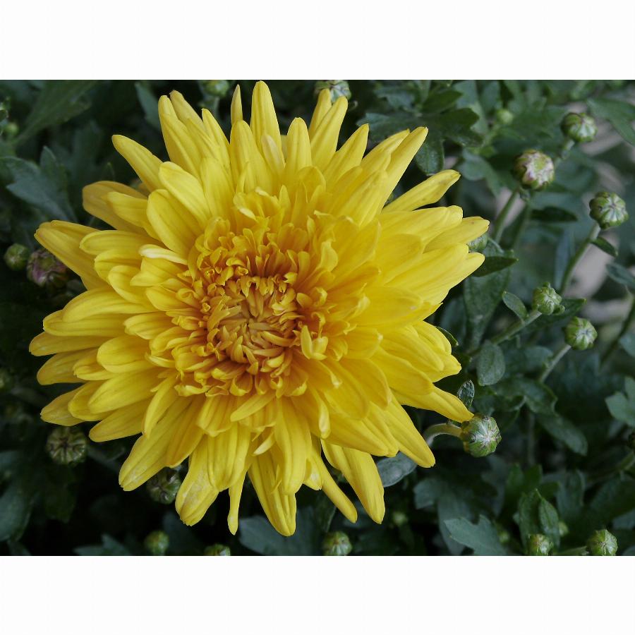 Хризантема крупноцветковая, ранняя (август), лимонного цвета. Высота куста 0,5 м. Махровый цветок до 10 см. Отлично зимует.