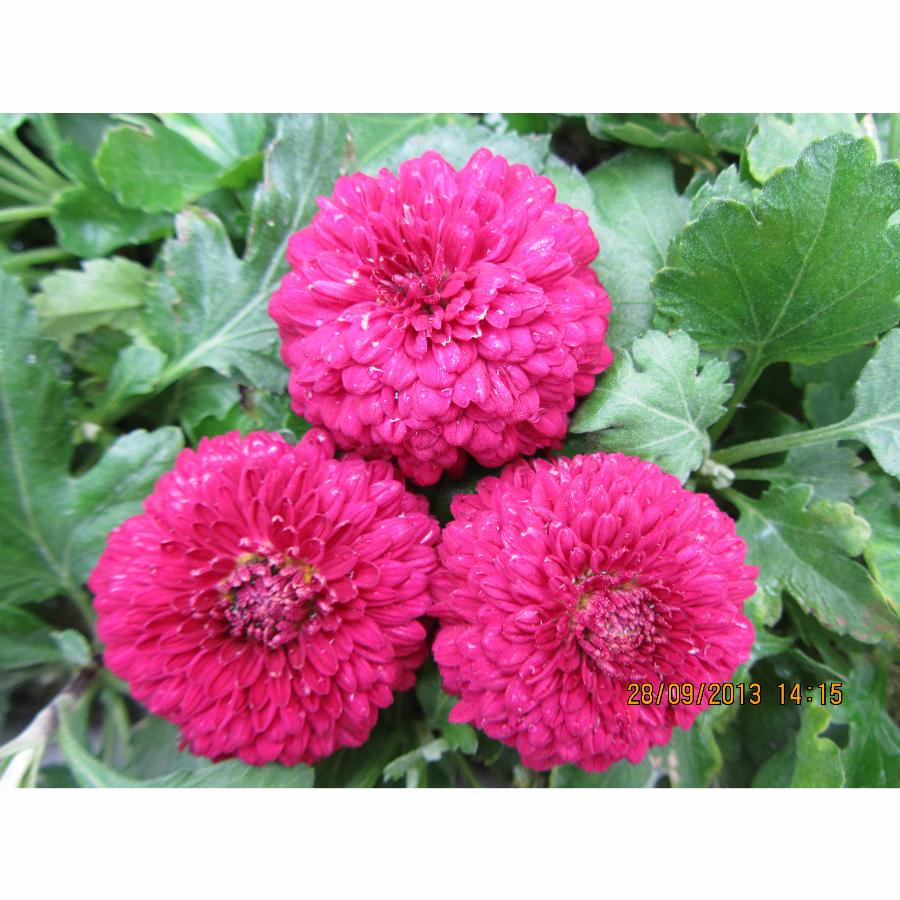 Класс полумахровых. Группа простых. Куст компактный, прямостоячий, высотой до 0,25 м., диаметром 20 см. Соцветие плоское, розово-малиновой окраски, диаметром около 2 см. Цветёт со 2-й декады августа до конца сентября. В период массового цветения образует на одном растении до 25 соцветий.