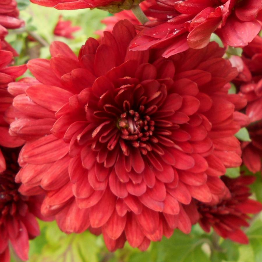 Цветки насыщенного бордового цвета, махровые 5-6 см. в диаметре. Куст прямостоячий высотой 0,7 м. Начало цветения август-сентябрь.
