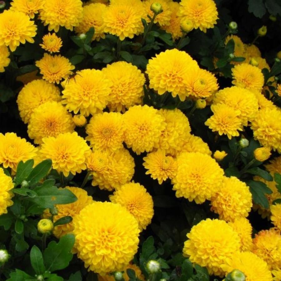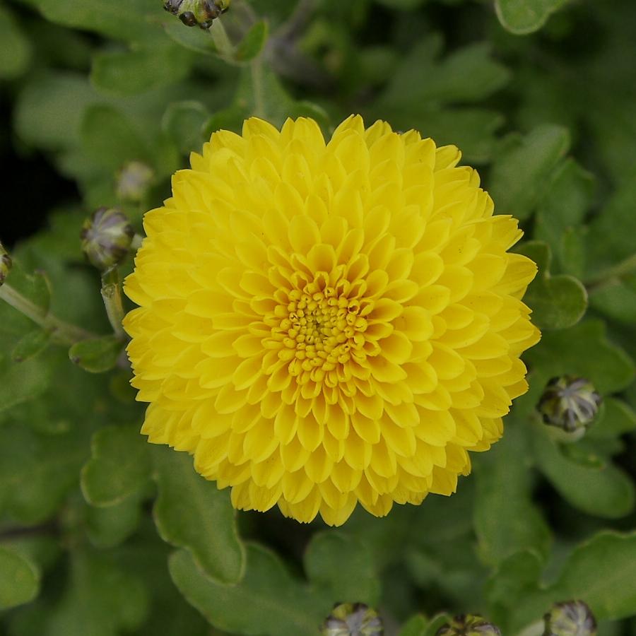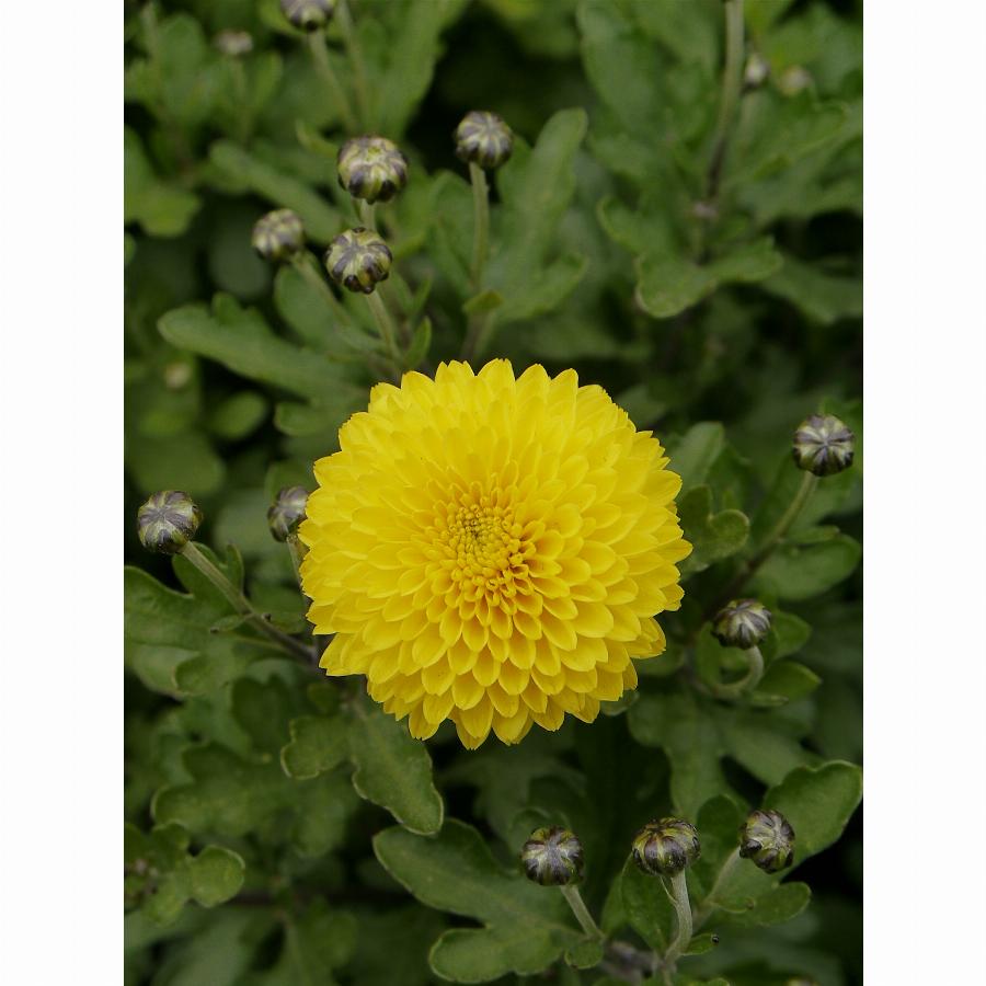Корейская хризантема, с густомахровыми цветами,,окрашенными в ярко-желтый, желтковый цвет. Высота куста 0,35-0,4 м. Зимует в грунте. Зацветает в конце августа.