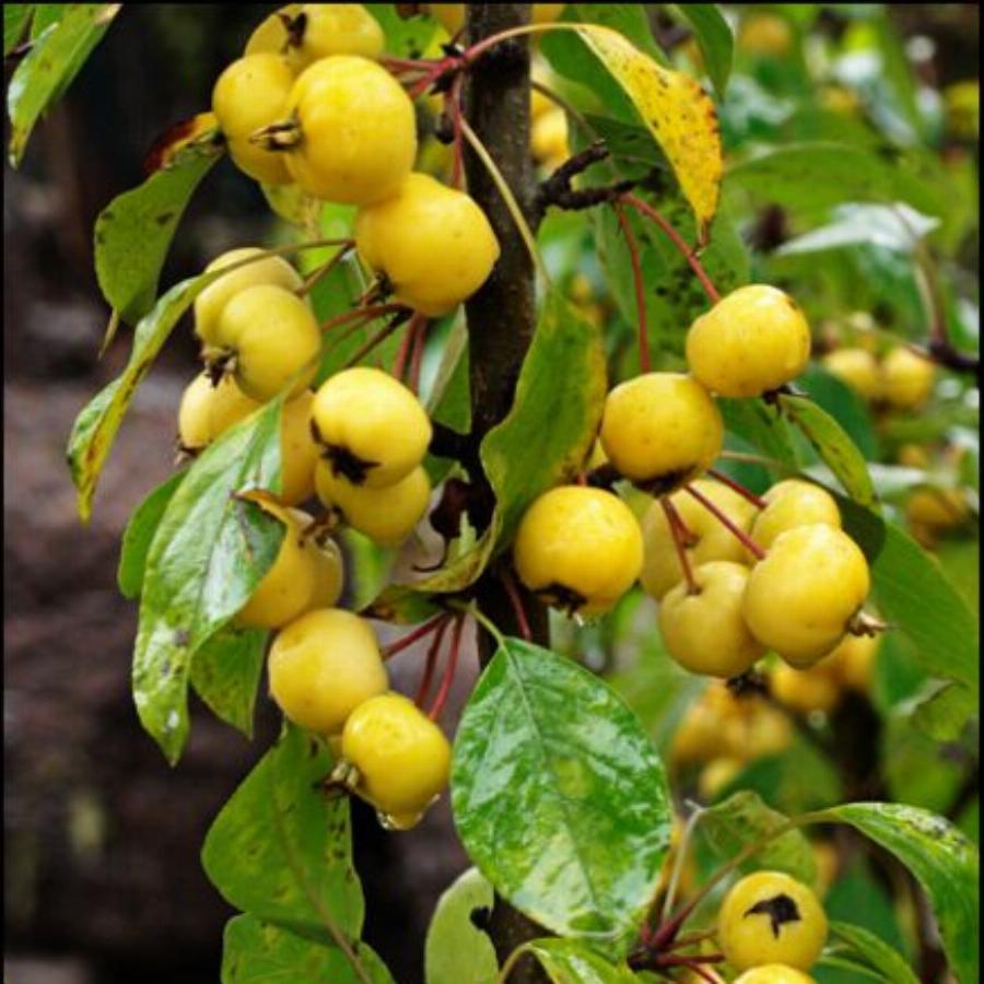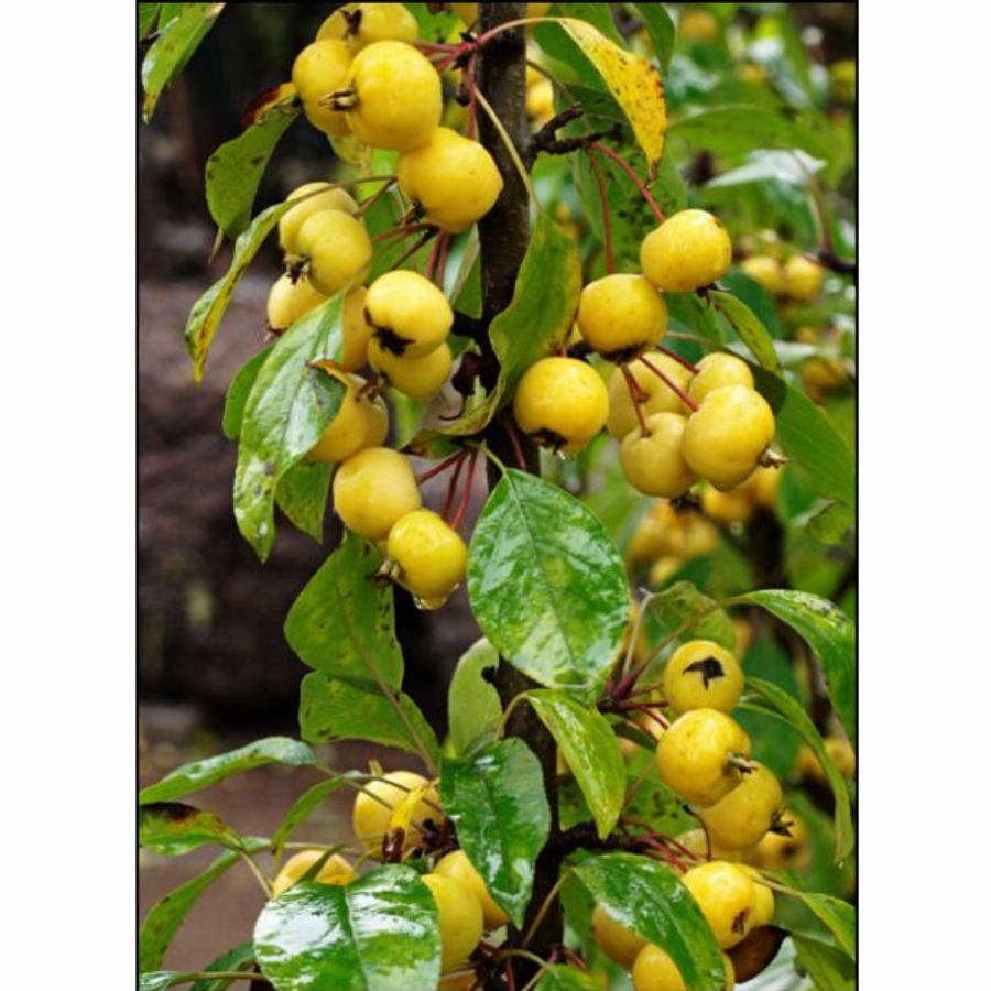 Среднерослая колонна. Сорт исключительно урожайный и скороплодный, созревает в середине августа. Среднеустойчив к парше. Плоды весом 20 гр (размер крупной черешни) , очень привлекательной ярко-жёлтой окраски. Плоды пригодны для переработки.