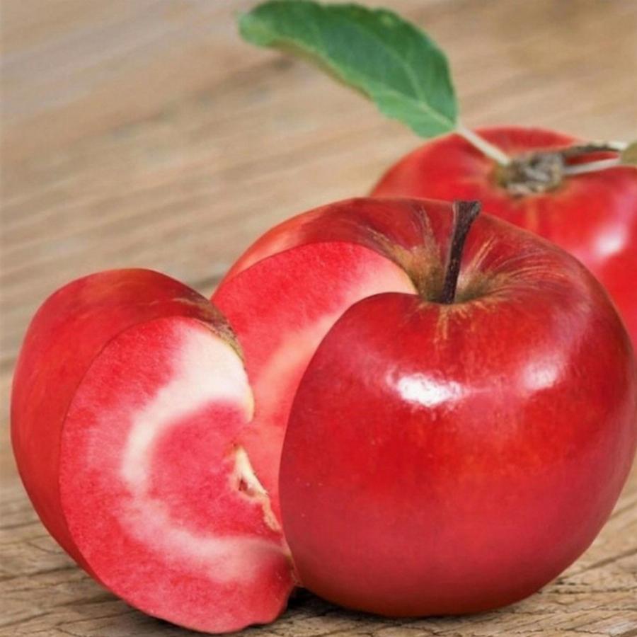 Яблоки созревают в конце сентября, они округлые, среднего размера, весом около 140 гр. Кожица глянцевая, красная, мякоть розовато-красная, сочная, очень ароматная, сладкая с ягодными нотками, не темнеет при разрезании. Яблоки хорошо хранятся до января и в процессе хранения становятся даже вкуснее. обладает устойчивостью к парше, морозостоек, однако молодые саженцы рекомендуется укрывать на зиму. Морозостойкость до (-29°С)